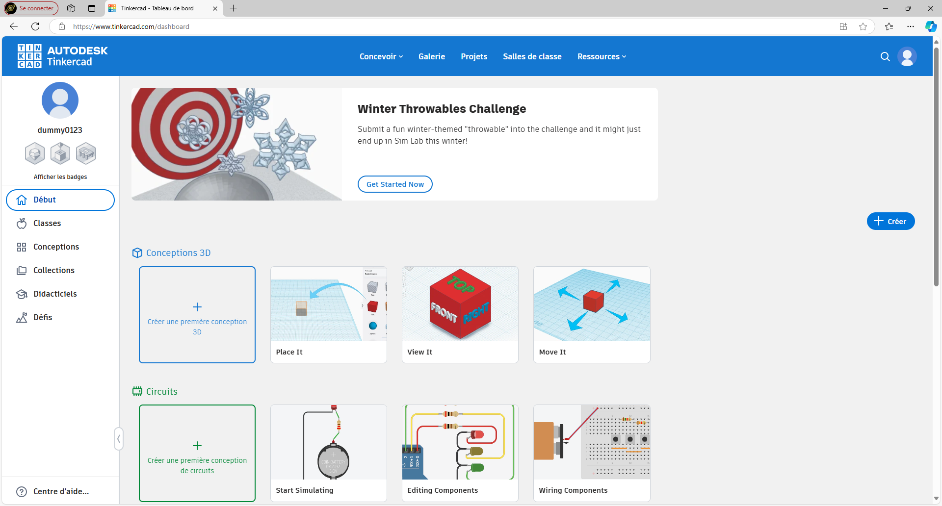 Cliquer sur le lien suivant : https://www.tinkercad.com/joinclass/BMJ8SAPXR puis cliquer sur le bouton Utiliser mon pseudo.