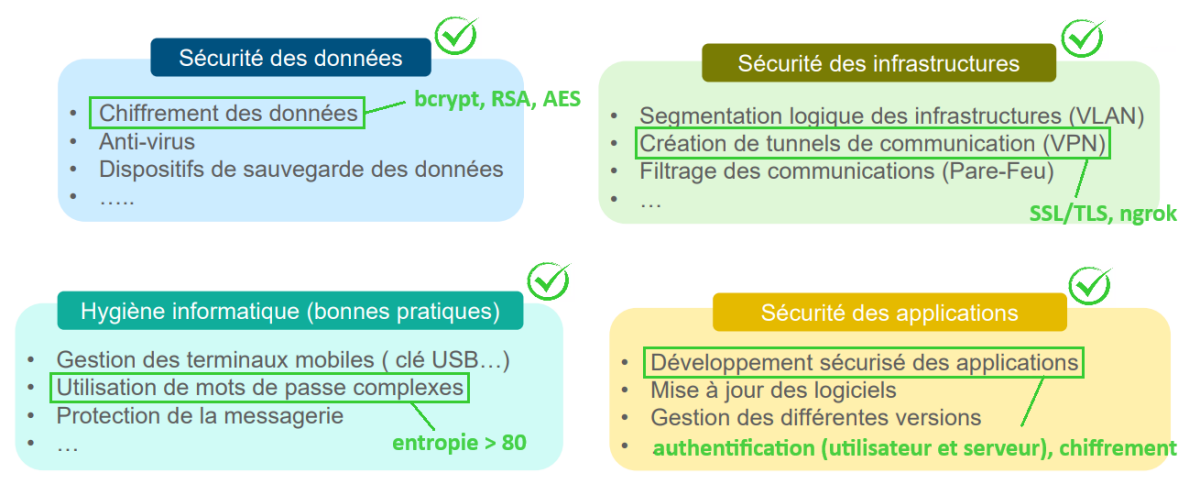 Félicitations vous avez renforcé la cybersécurité de votre application TickTock dans les 4 domaines suivants :