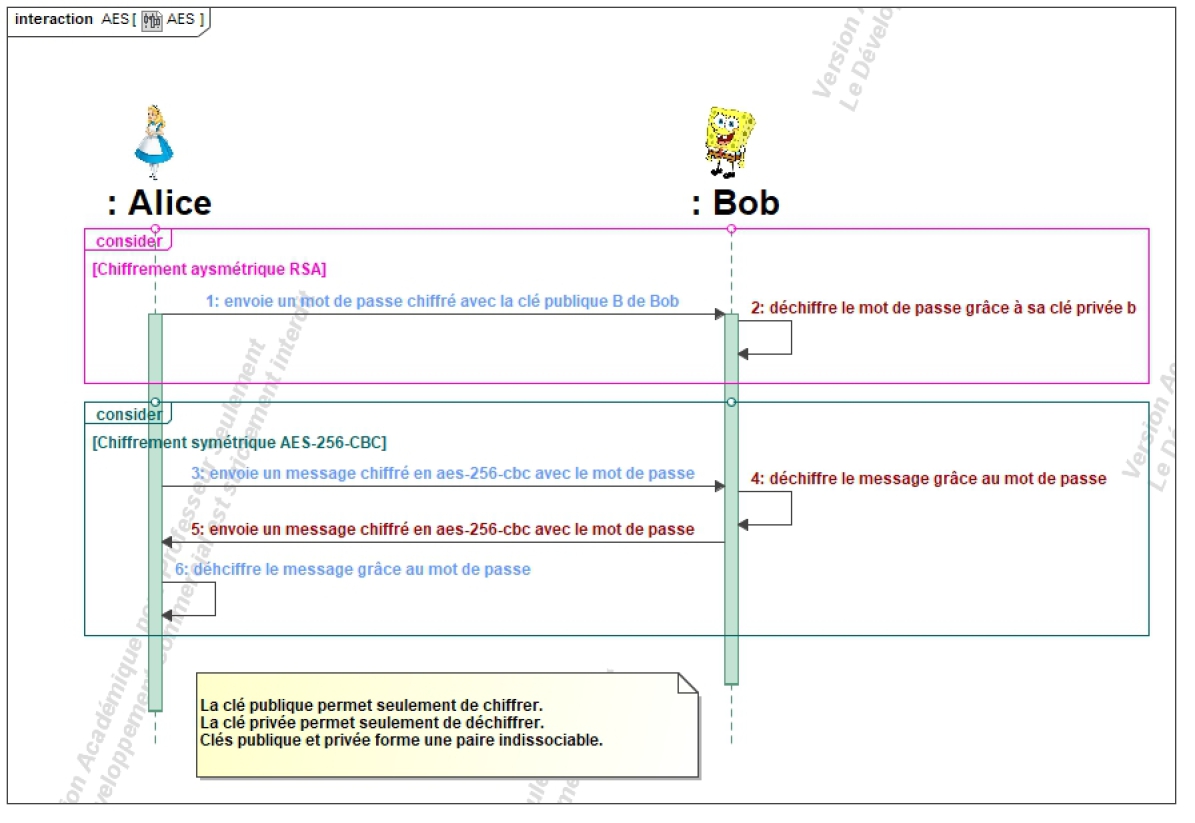 Le but est que chacun puisse déchiffrer le message de l'autre en exécutant les commandes openssl adéquates.