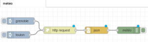 http requestconfiguré avec l'url :https://www.prevision-meteo.ch/services/json/{{payload}}un nœud json configuré avec l'option