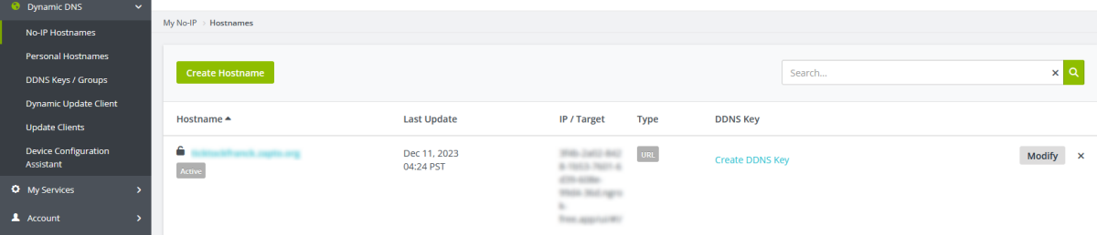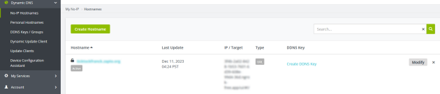 Cliquer sur No-IP Hostnames, votre redirection apparaît.