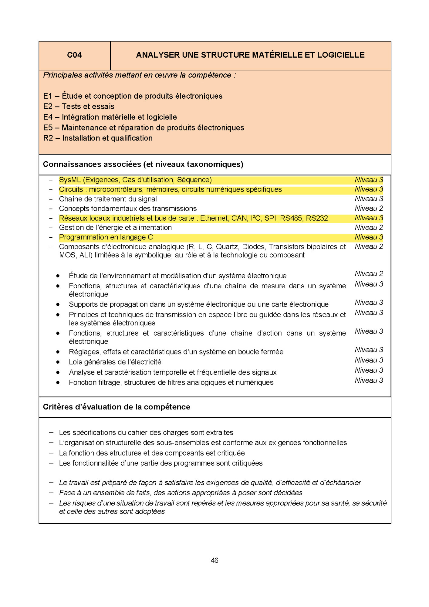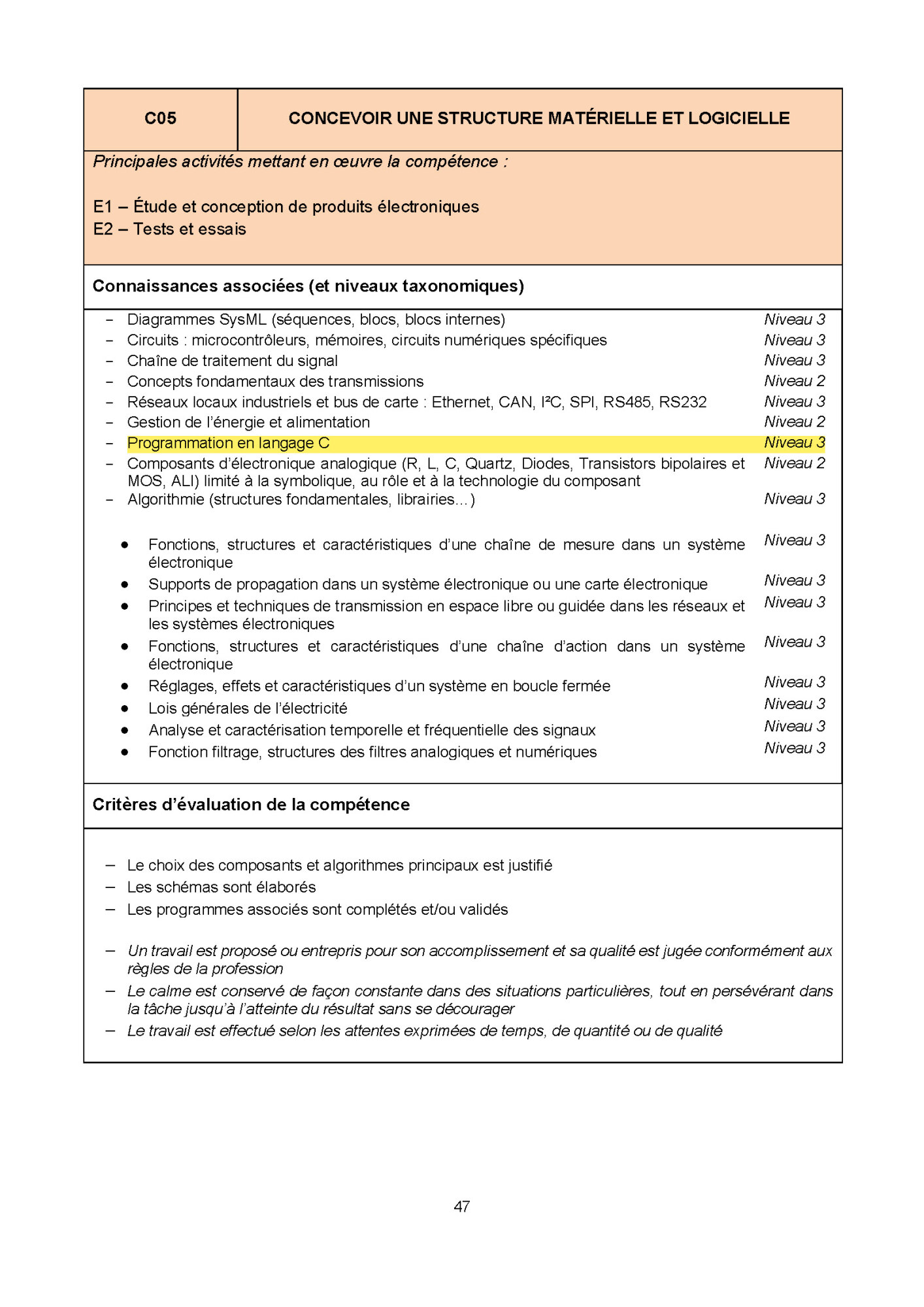 Référence au programme