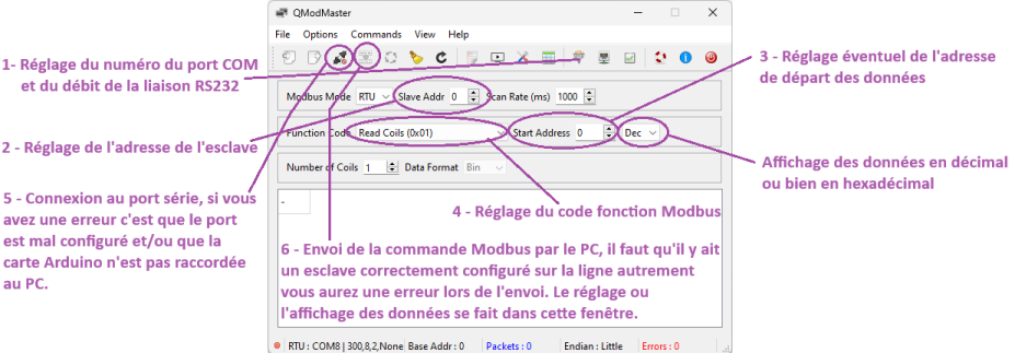 Objectif : utiliser le logiciel QModMaster afin de commander l'allumage de la led bleue.