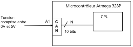 VADC1 étant un signal analogique il faut utiliser une instruction particulière qui permet de faire appel au Convertisseur Analogique Numérique (CAN) interne au microcontrôleur.