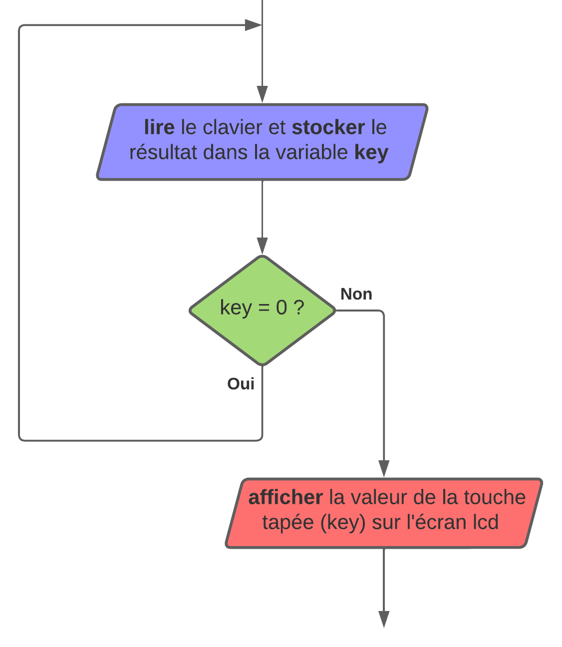 | 3 | lire le clavier et stocker le résultat dans la variable key |