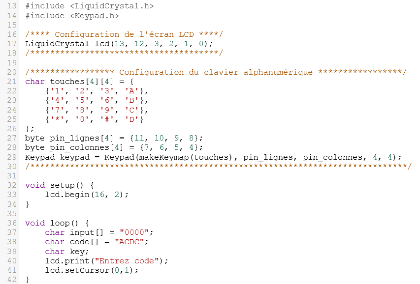 Les variables du loop() permettent de mémoriser le code tapé par l'utilisateur ainsi que le code secret :
