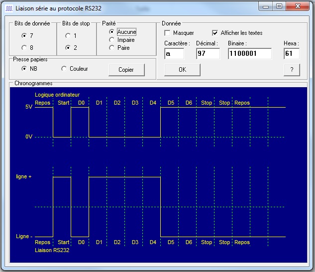 Cette trame est celle adoptée par la liaison RS232.
